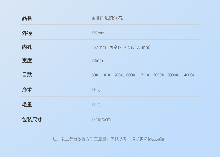 - 目數 60#、140#、280#、600#、1200#、