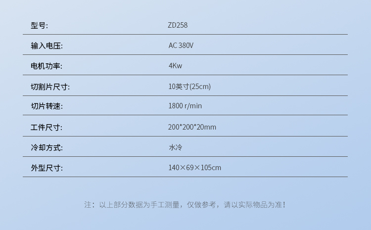 - 切割片尺寸 10英寸(25cm)